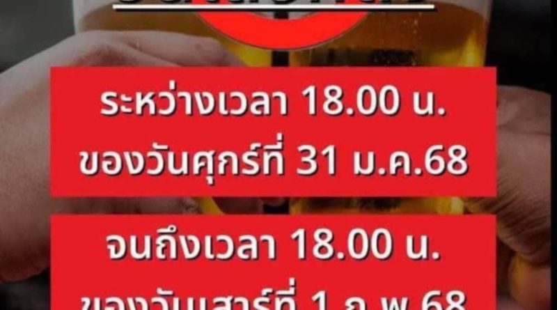 ข่าวประชาสัมพันธ์ 31 มกราคม 2025 jiravatthongchai ห้ามขาย จำหน่าย จ่ายแจก จัดเลี้ยงสุราทุกชนิด เนื่องจากเป็นวันเลือกตั้ง อบจ. ห้ามขาย จำหน่าย จ่าย Read More