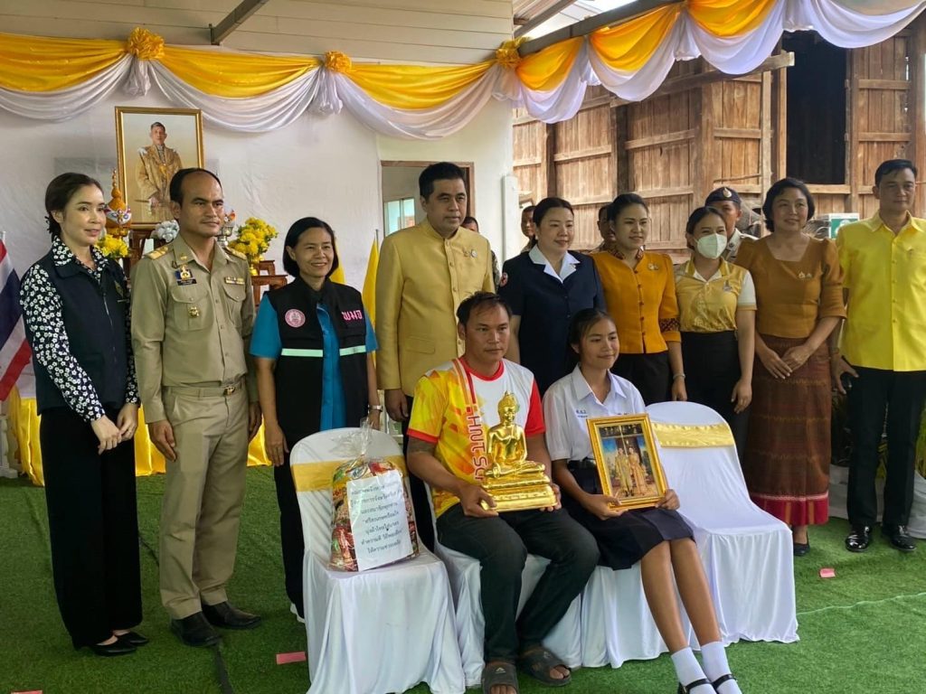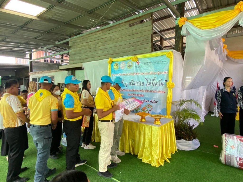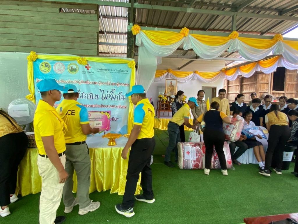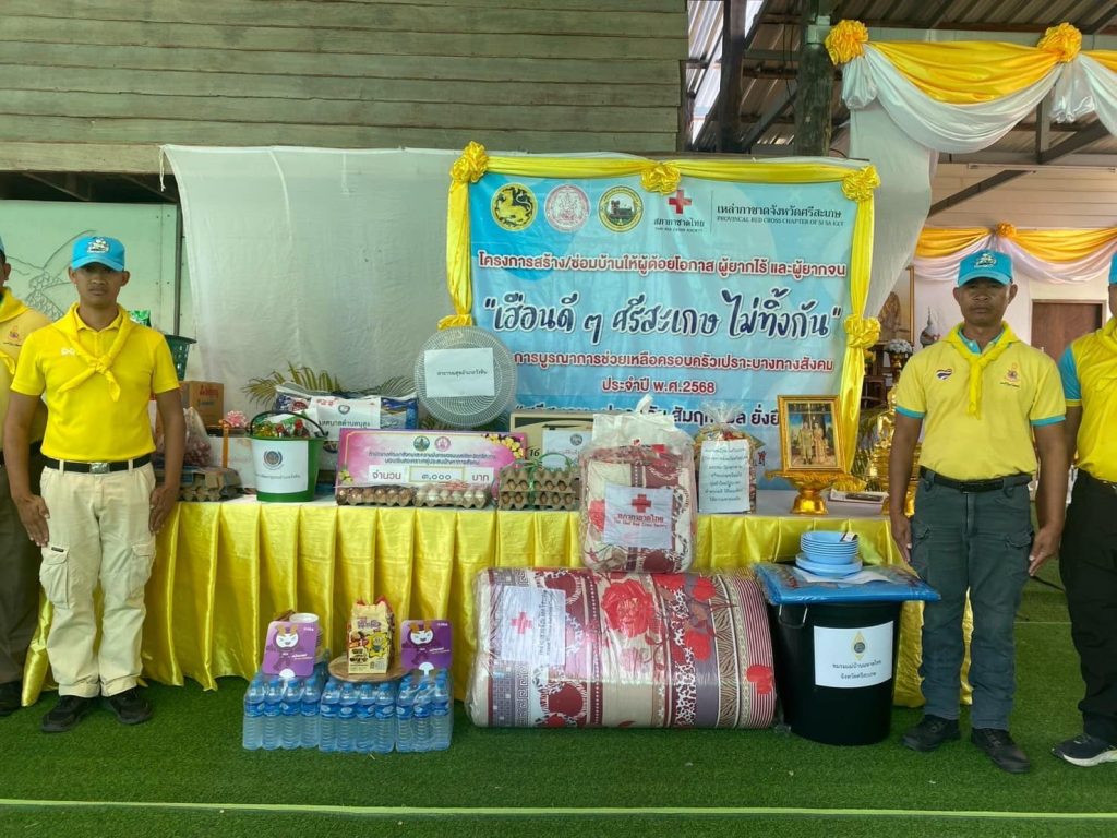 พ.ต.อ.สุรัตน์ คลายทุกข์ ผกก.สภ.วังหิน พร้อม ข้าราชการตำรวจจิตอาสา สภ.วังหิน สายตรวจจราจร ,สายตรวจรถยนต์ ร่วมพิธีมอบบ้านโครงการซ่อม/สร้างบ้านครัวเรือนเปราะบางทางสังคม เฉลิมพระเกียรติพระบาทสมเด็จพระเจ้าอยู่หัว เนื่องในโอกาสมหามงคลเฉลิมพระชนมพรรษา 6 รอบ 28 กรกฎาคม 2568 จำนวน 1 ราย ในพื้นที่อำเภอวังหิน จังหวัดศรีสะเกษ นางสาวชลธิชา มังษา อายุ 16 ปี อาศัยอยู่บ้านเลขที่ 95 หมู่ที่ 5 ตำบลบุสูง อำเภอวังหิน จังหวัดศรีสะเกษ โดยมีนายอนุพงศ์ สุขสมนิตย์ ผู้ว่าราชการจังหวัดศรีสะเกษ