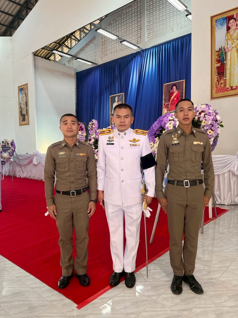 วันนี้ 25 พ.ย. 2568 เวลาประมาณ 08.00 น. พ.ต.ท.สนั่นพล กัลยานาม รอง ผกก.สส.สภ.วังหิน พร้อมด้วย จ.ส.ต.ชาญชัย ชมภู และ ส.ต.ต.ธีรวัฒน์ กอวิรัตน์ เป็นตัวแทนข้าราชการตำรวจ สภ.วังหิน ร่วมกิจกรรมเฉลิมพระเกียรติพระบาทสมเด็จพระมงกุฎเกล้าเจ้าอยู่หัว เนื่องในโอกาสวันคล้ายวันสวรรคครบ 100 ปี และกิจกรรมเฉลิมพระเกียรติสมเด็จพระเจ้าภดินีเธอ เจ้าฟ้าเพชรรัตนราชสุดา สิริโสภาพัณณวดี เนื่องในโอกาสวันคล้ายวันประตูติดรบ 100 ปี ณ หอประชุมอำเภอวังหิน จึงเรียนมาเพื่อโปรดทราบ