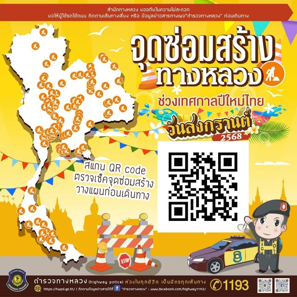 ข่าวประชาสัมพันธ์ อัพเดทจุดซ่อมสร้างทางหลวงทั่วประเทศขณะนี้ สำหรับ #เทศกาลสงกรานต์ 2568 7 เมษายน 2025 jiravatthongchai อัพเดทจุดซ่อมสร้างทางหลวงทั่วประเทศขณะนี้ สำหรับ #เทศกาลสงกรานต์ 2568กดลิงค์ด้านล่างนี้ครับhttps://www.google.com/maps/d/edit…อาจพบการจราจรหนาแน่นในช่วงจุดดังกล่าว ขออภัยในความไม่สะดวกครับ และขอให้ทุกท่านเตรียมตัวให้พร้อมก่อนออกเดินทางนะครับน้ำ ขนม อย่าให้ขาด และที่สำคัญ ผู้ขับรถทุกท่านต้องพักผ่อนให้เพียงพอก่อนขับรถทางไกลนะครับ#กองบัญชาการตำรวจสอบสวนกลางโดยกองบังคับการตำรวจทางหลวงห่วงใยทุกชีวิตเป็นมิตรทุกเส้นทาง ทำทุกอย่างด้วยสำนึกเพราะเราคือ #ตำรวจทางหลวง