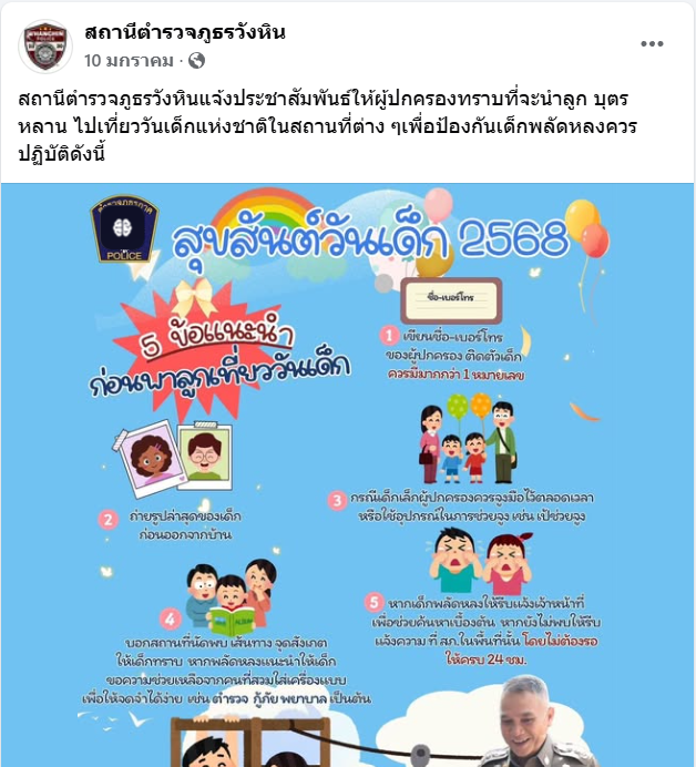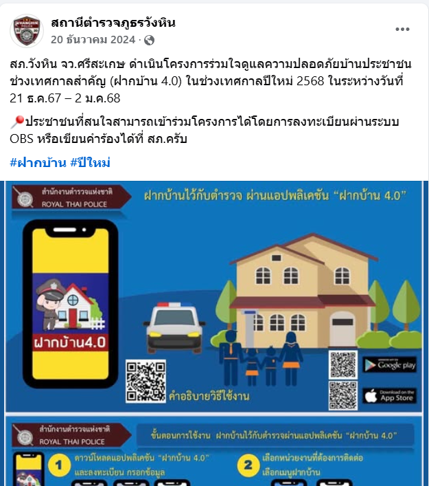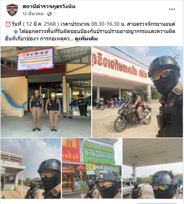 เผยแพร่บนเพจ Facebook ของสถานีตำรวจภูธรวังหิน