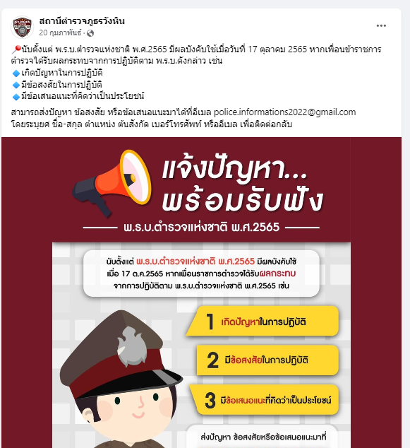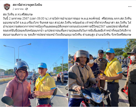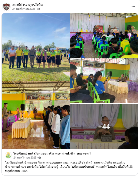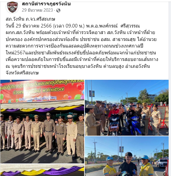 เผยแพร่บนเพจ Facebook ของสถานีตำรวจภูธรวังหิน