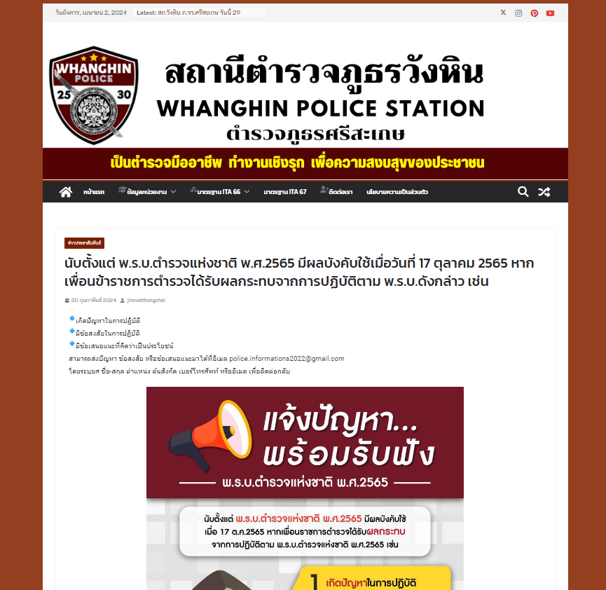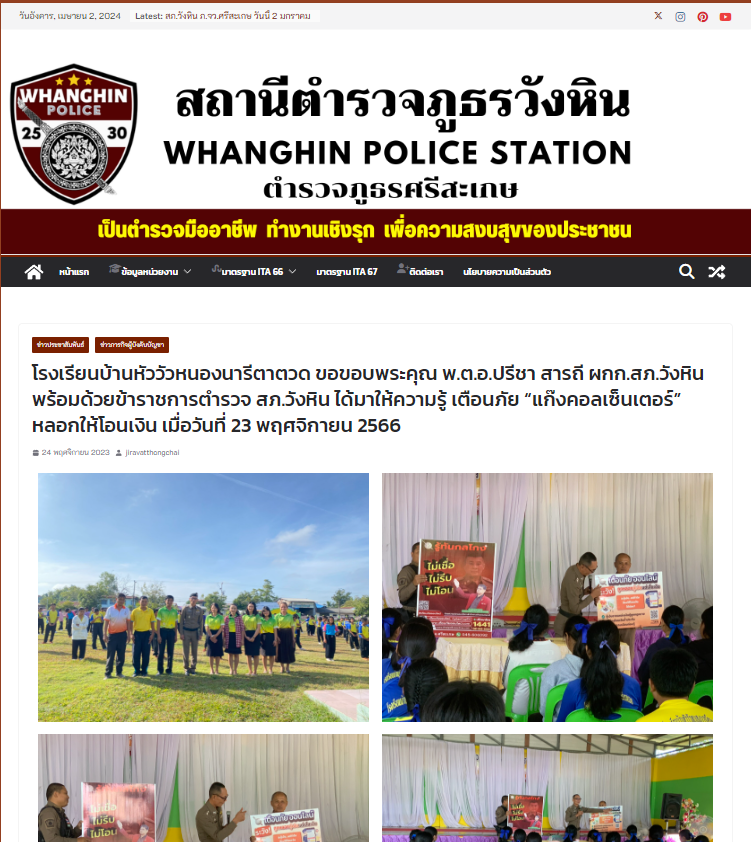 เผยแพร่บนเว็บไซต์ของสถานีตำรวจภูธรวังหิน